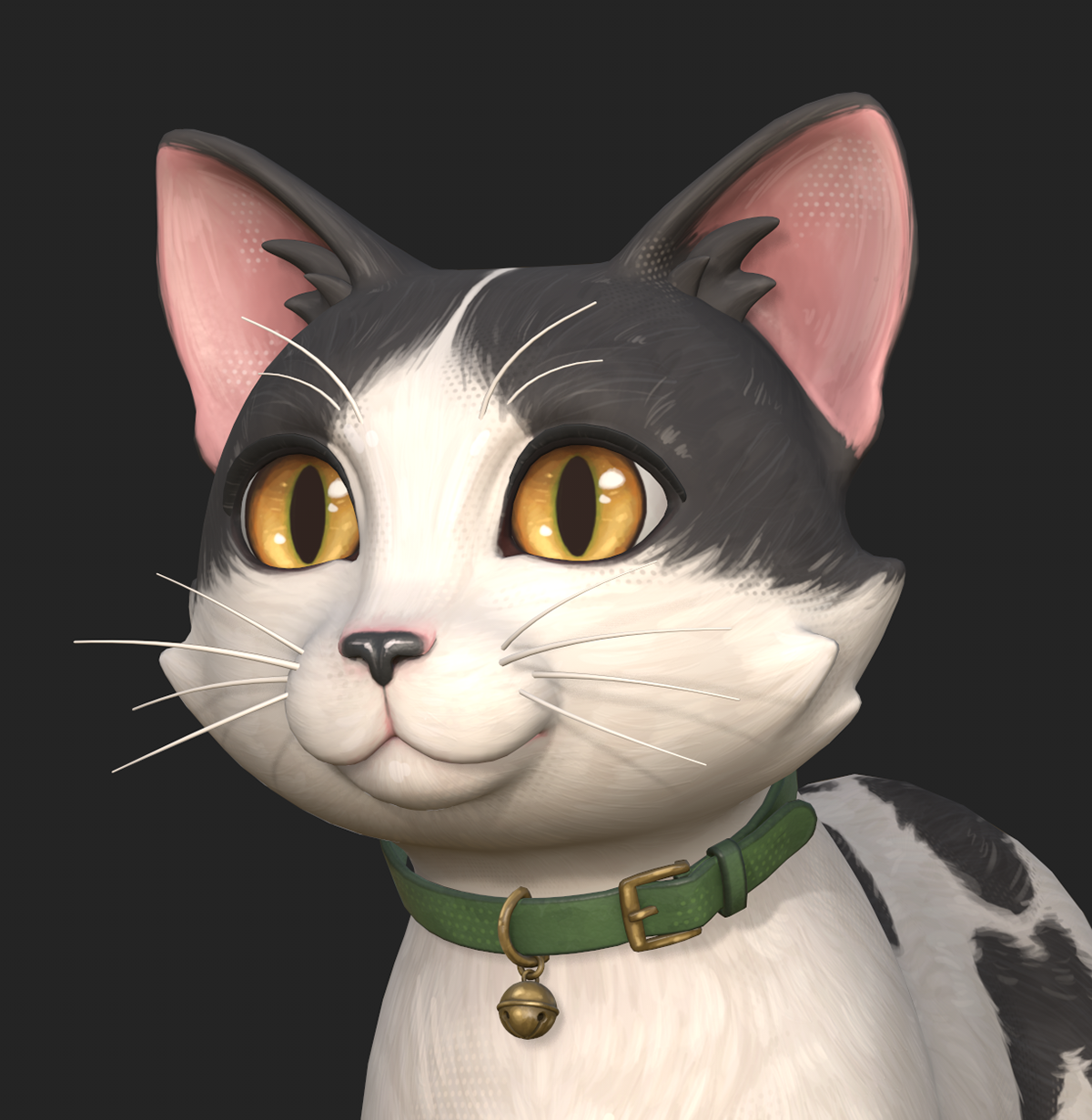 I largely based the model off my own kitty, Moomoo. Taking special inspiration from him for the surfacing.